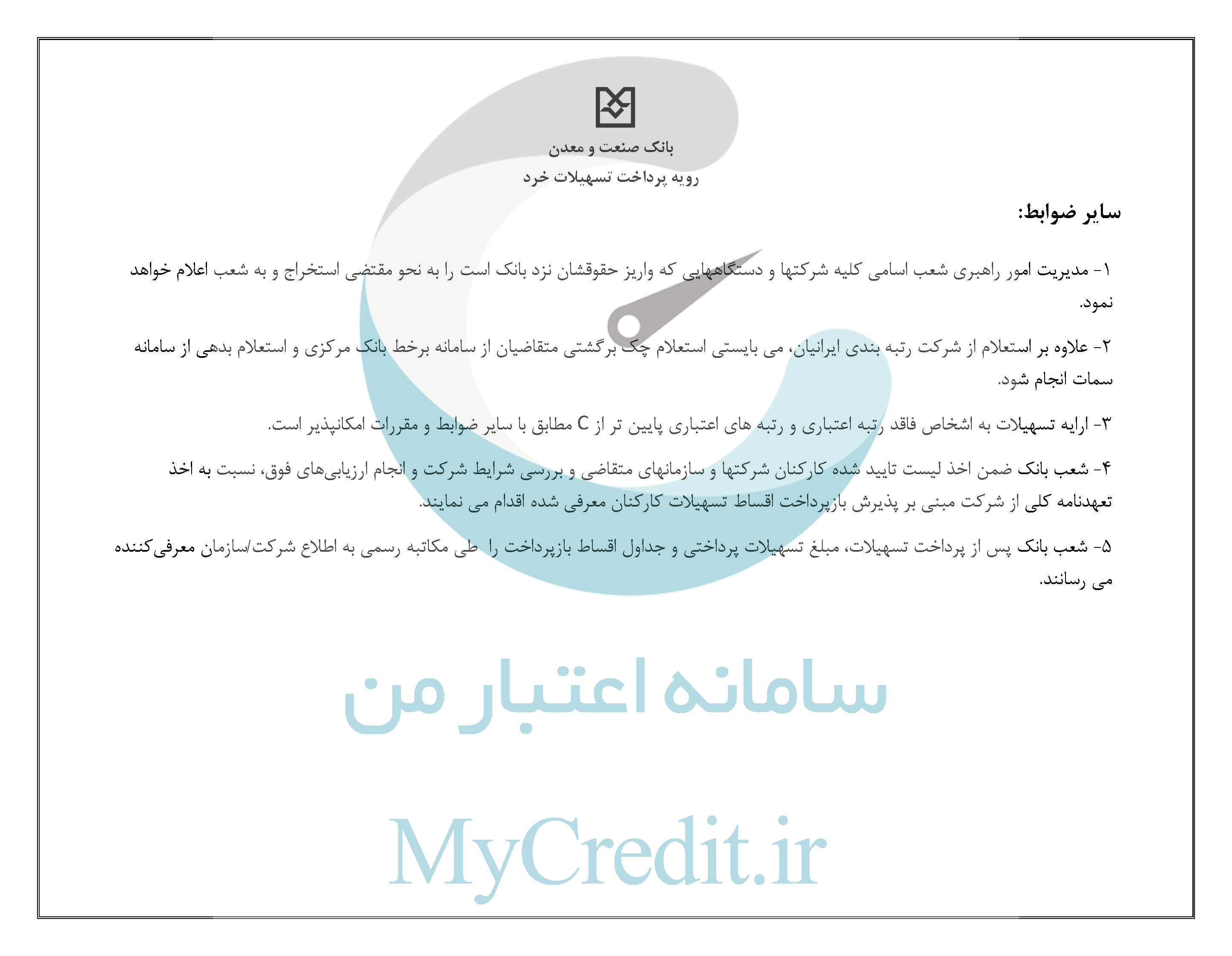 2 -علاوه بر استعلام از شرکت رتبه بندی ایرانیان، می بایستی استعلام چک برگشتی متقاضیان از سامانه برخط بانک مرکزی و استعلام بدهی از