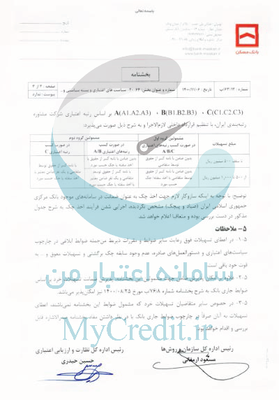 A(A1،A2،A3)،B(B1،B2،B3)، C(C1،C2،C3) بر اساس رتبه اعتباری شرکت مشاوره رتبه بندی ایران، با تنظیم قرارداد داخلی لازم الاجرا و به شرح ذیل صورت می پذیرد: