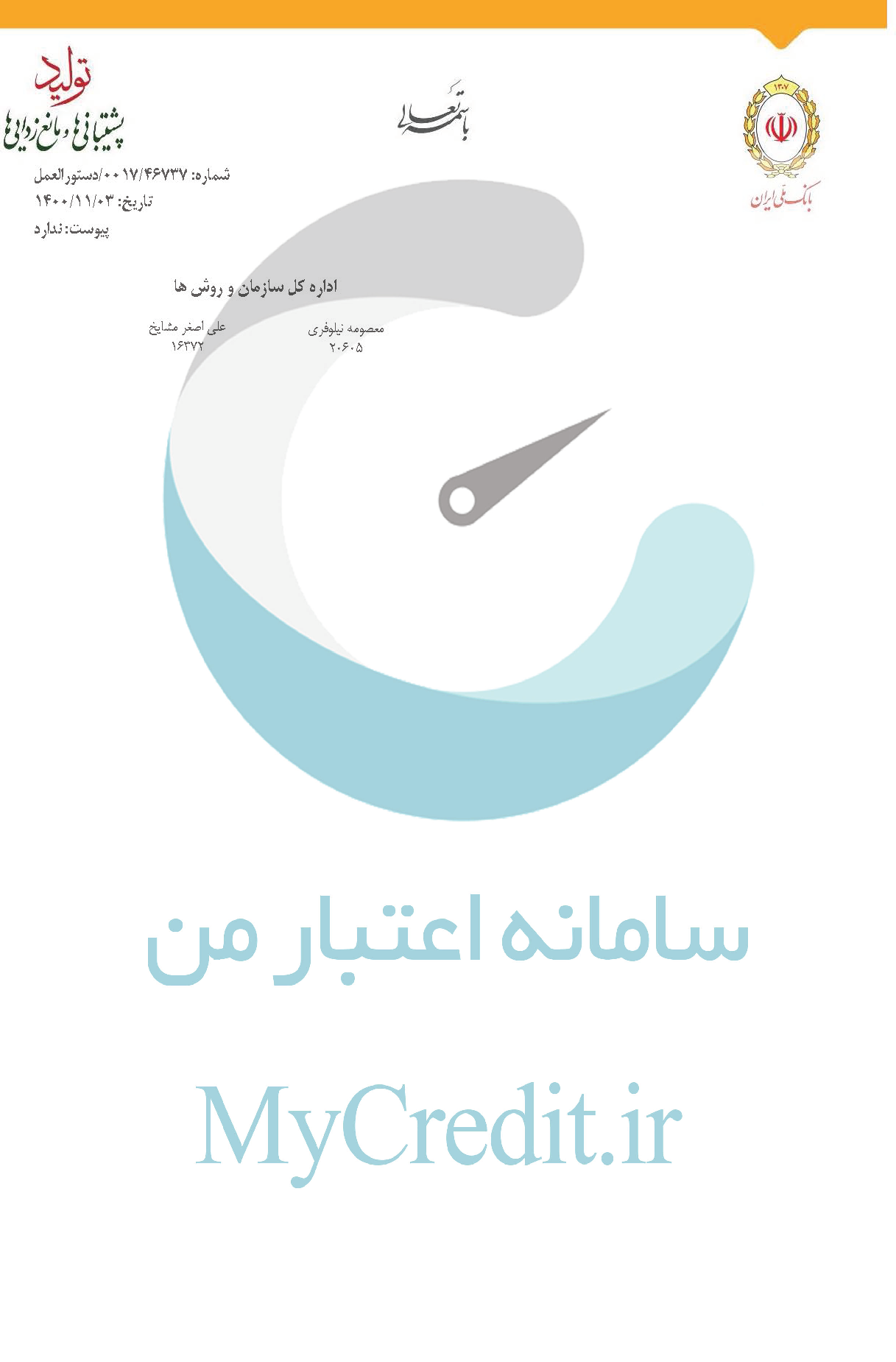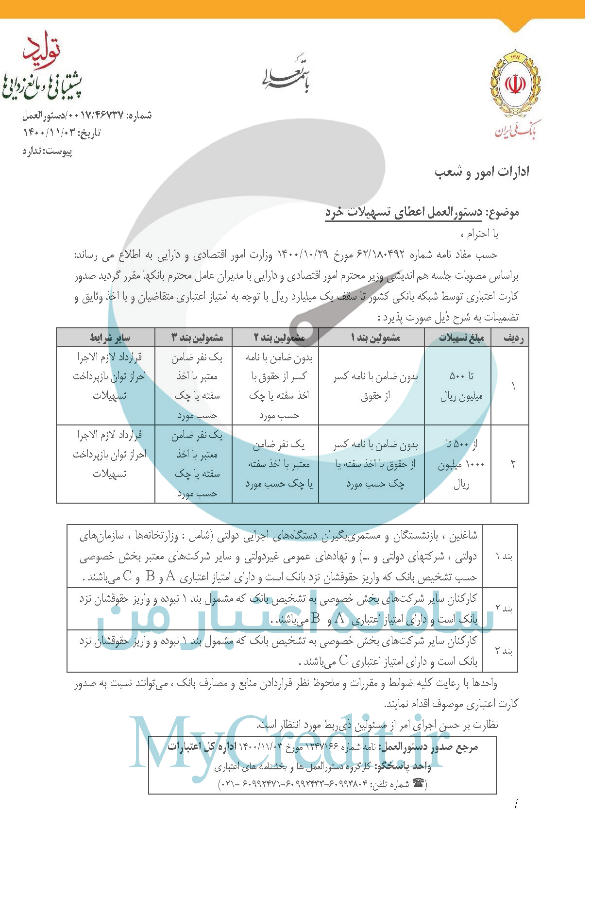 دانلود بخشنامه دریافت تسهیلات بدون ضامن با اعتبار سنجی بانک ملی