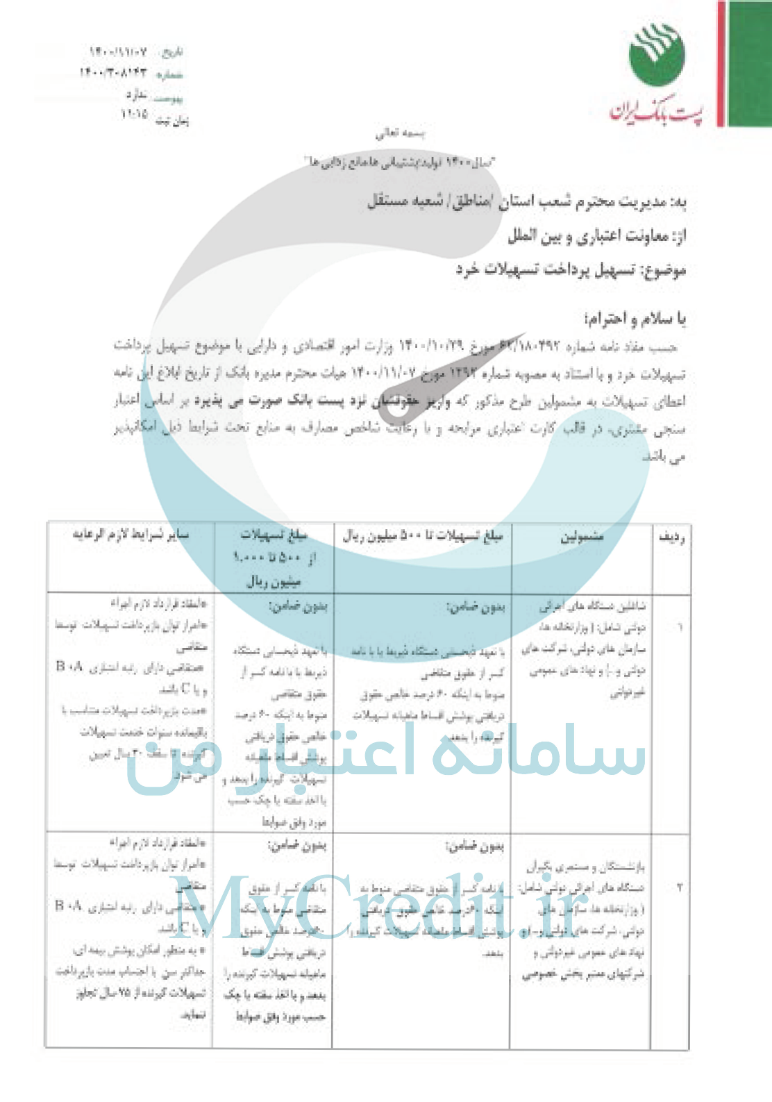خاطر نشان می سازد پرداخت تسهیلات به اشخاص فاقد رتبه اعتباری و یا رتبه اعتباری پایین تر از رتبه C درچارچوب سیاست ها و ضوابط اعتباری و رعایت بخشنامه های مربوط امکانپذیر می باشد.