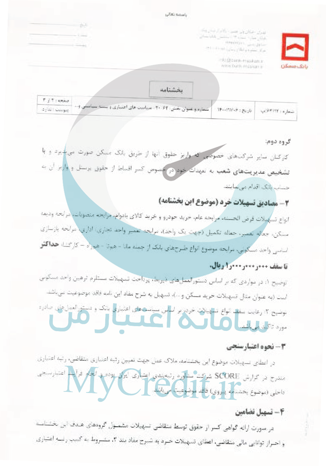 پیرو بخشنامه شماره /76/8ب مورخ 1400/08/25 و در راستای اجرای منویات ریاست محترم جمهوری اسلامی ایران مستند به نامه شماره 62/180492 مورخ 1400/10/29 معاون محترم امور بانکی، بیمه و شرکت های دولتی وزارت امور اقتصادی و دارایی و با عنایت به مصوبه مورخ 1400/11/05 هیئت کدیره محترم بانک به استحضار میرساند: